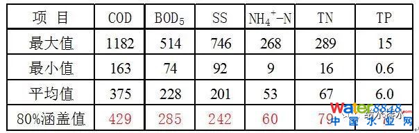 1)實際進水水質(zhì)統(tǒng)計(葡萄嘴污水處理廠2010年至2013年)
