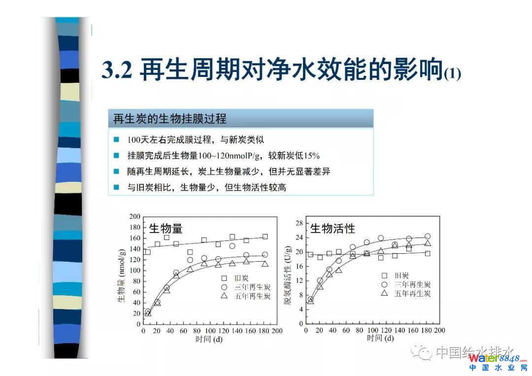臭氧/生物活性炭工藝中活性炭失效判定及更換研究 并在此基礎(chǔ)上從微生物生長(zhǎng)、污染物凈化、抗沖擊負(fù)荷能力和顆粒泄漏等方面開展了不同活性炭更換方案的對(duì)比研究,提出了技術(shù)可行、經(jīng)濟(jì)合理的更換方案