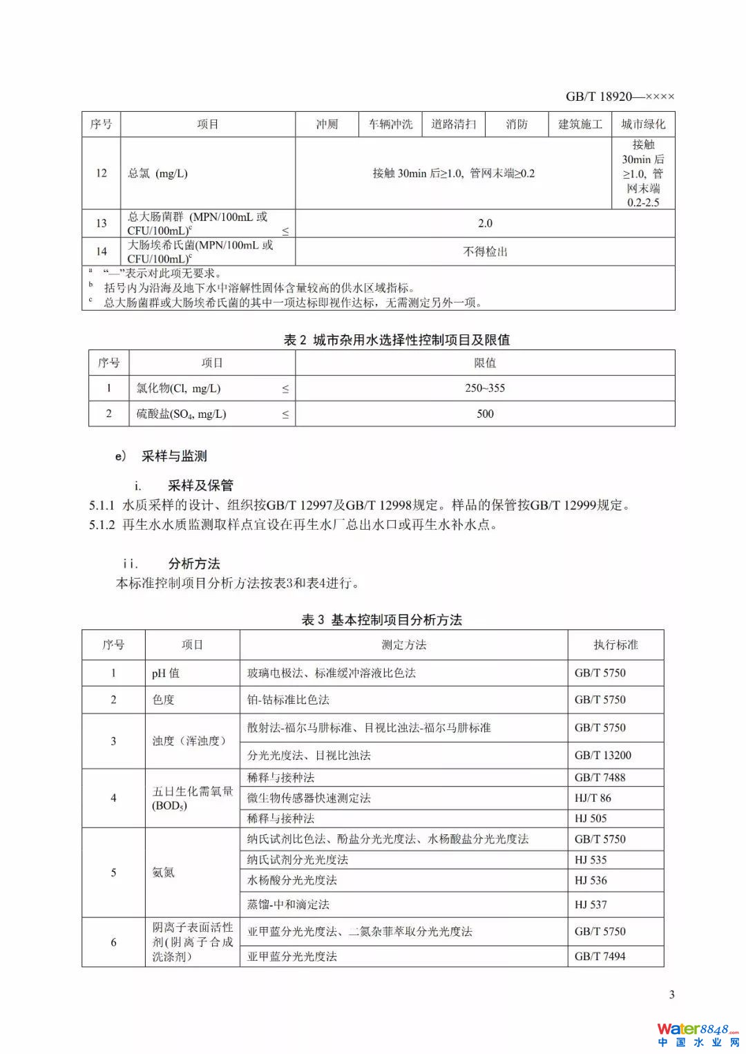 住建部發(fā)布《城市污水再生利用 城市雜用水水質(zhì)GB/T18920(修訂)》征求意見(jiàn)稿