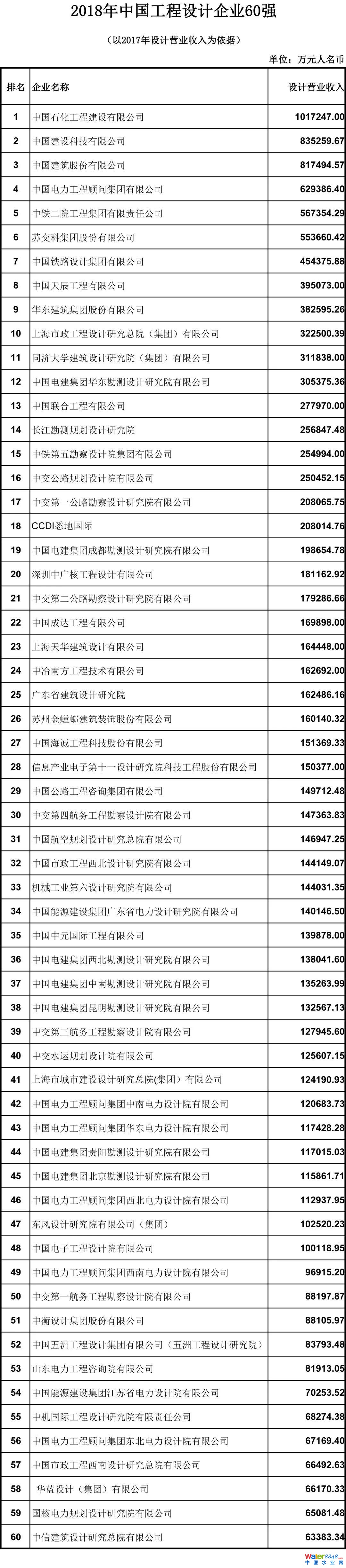 “2018中國(guó)工程設(shè)計(jì)企業(yè)60強(qiáng)/承包商80強(qiáng)”揭榜了
