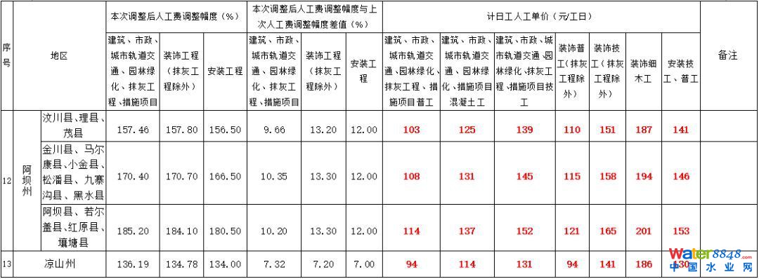全國各省集中大幅上調(diào)人工單價,四川/河南/廣東/山東/陜西等。