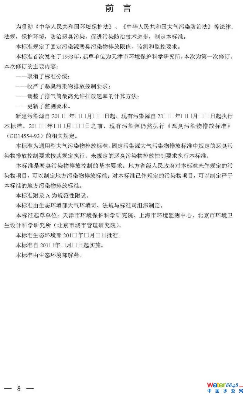 為貫徹《中華人民共和國(guó)環(huán)境保護(hù)法》和《中華人民共和國(guó)大氣污染防治法》,完善國(guó)家大氣污染物排放標(biāo)準(zhǔn),改善空氣環(huán)境質(zhì)量,我部決定修訂國(guó)家環(huán)境保護(hù)標(biāo)準(zhǔn)《惡臭污染物排放標(biāo)準(zhǔn)(GB 14554-93)》。