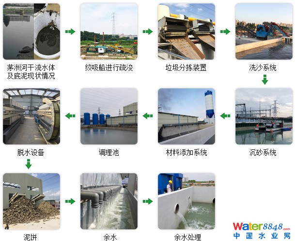 茅洲河流域(寶安片區(qū))水環(huán)境綜合整治項(xiàng)目第五標(biāo)段主要是對(duì)茅洲河干流及其18條支流的底泥進(jìn)行清淤及無(wú)害化處理,淤泥清理總量龐大、技術(shù)難度很高,目前國(guó)內(nèi)尚無(wú)此先例;加之施工地段地質(zhì)為軟土地基且當(dāng)?shù)貧夂蚋邷囟嘤,雷暴大風(fēng)等極端天氣較為頻繁,種種不利條件給本就十分吃緊的施工進(jìn)度帶來(lái)了極大困難。使用本公司專有技術(shù),聯(lián)合武漢大學(xué)等知名高校和社會(huì)科研力量,大力開(kāi)展技術(shù)攻關(guān)和施工工藝創(chuàng)新,在最短時(shí)間內(nèi)完成了1#淤泥處理廠的建設(shè)和投產(chǎn),實(shí)現(xiàn)了污染底泥的循環(huán)利用和變廢為寶。