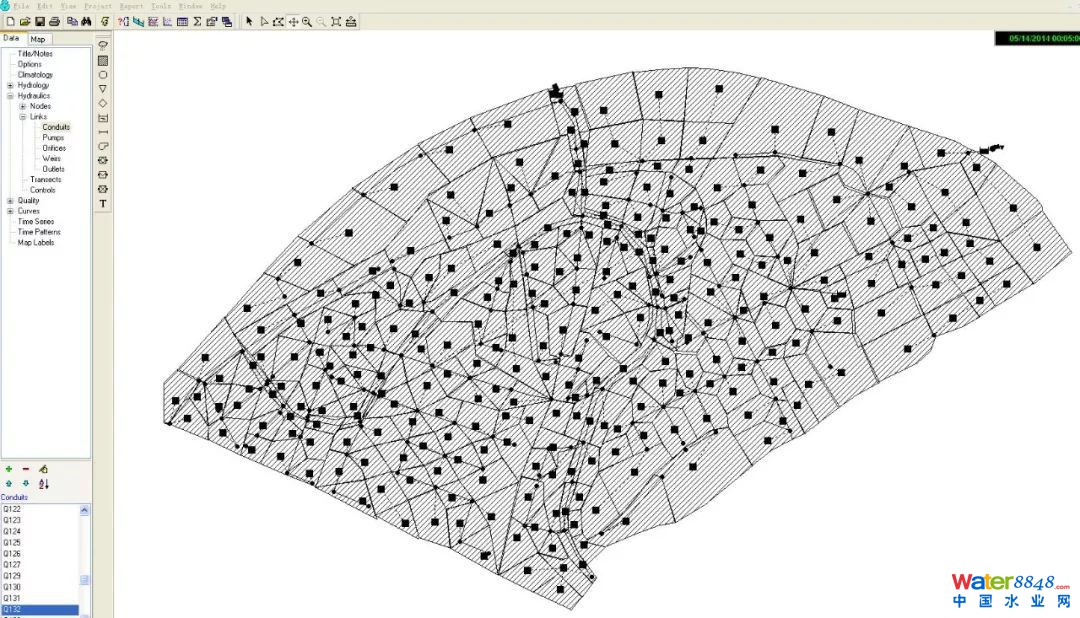 規(guī)劃利用SWMM模型對(duì)諶家磯地區(qū)排水規(guī)劃管渠及閘站進(jìn)行模擬校核。系統(tǒng)設(shè)施規(guī)劃規(guī)模滿足排澇目標(biāo)(見圖4、5)。