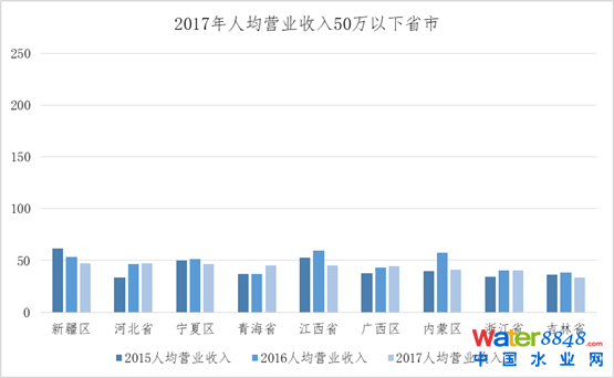 2017年人均營業(yè)收入水平超過100萬省市包括:天津市、北京市、上海市、湖南省、湖北省、西藏區(qū)、四川省、河南省、貴州省、山東省、陜西省、安徽省。