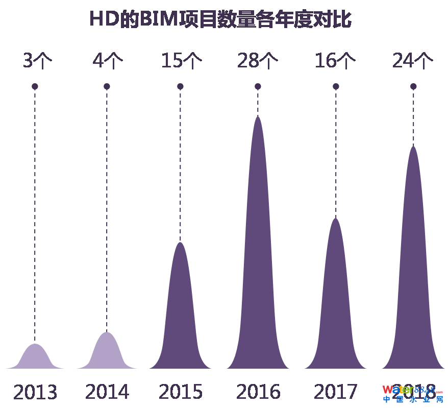 與歷年BIM項(xiàng)目的發(fā)展曲線(xiàn)類(lèi)似,BIM設(shè)計(jì)師人數(shù)也呈現(xiàn)出首先迅猛增加,然后逐步回落穩(wěn)定,這也代表了HD的BIM技術(shù)日漸成熟和回歸理性。