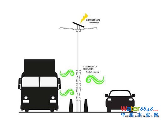 于是一位年輕的法國工程師 Antoine Leblanc 提出了一個創(chuàng)新的想法:收集車輛行駛產(chǎn)生的風(fēng)壓來作為綠色能源,直接為街邊路燈供能。
