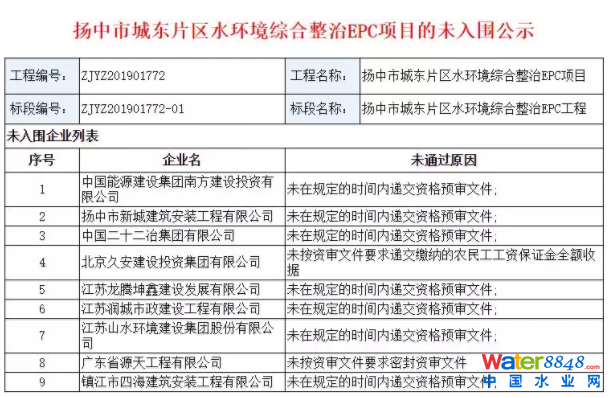 不到6億的水環(huán)境EPC項(xiàng)目火熱 多家因遲交資料未過資審