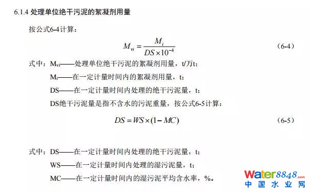 注:①處理單位絕干污泥的絮凝劑用量:此處藥劑主要指用于污泥濃縮脫水的絮凝劑。