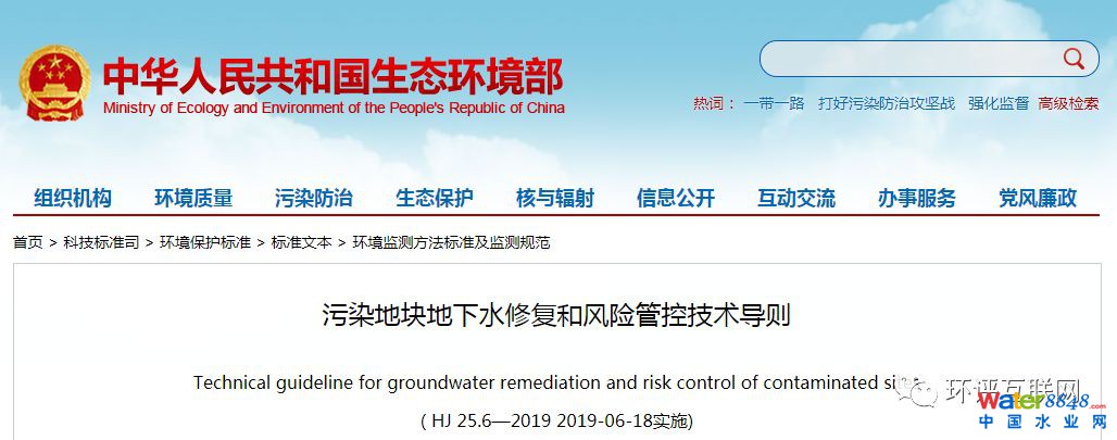 生態(tài)環(huán)境部發(fā)布《污染地塊地下水修復(fù)和風(fēng)險(xiǎn)管控技術(shù)導(dǎo)則》(HJ 25.6-2019)