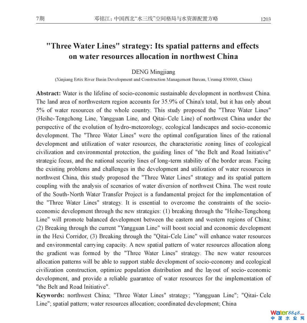 中國工程院院士 | 鄧銘江教授:中國西北“水三線”空間格局與水資源配置方略 即通過建設(shè)水量調(diào)配重大基礎(chǔ)工程,以期跨越“胡煥庸線”、“陽關(guān)線”和“奇策線”,支撐西北地區(qū)經(jīng)濟社會穩(wěn)定發(fā)展、生態(tài)