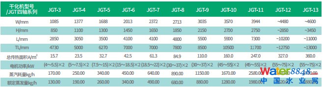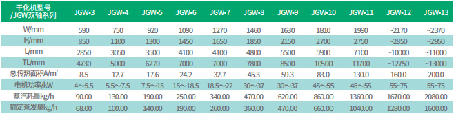 干化機(jī)型號(hào)JGW雙軸系列表: