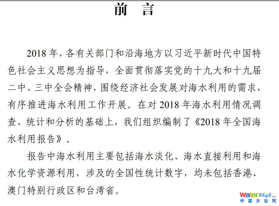 自然資源部發(fā)布《2018年全國海水利用報告》(全文)| 中國截至2018年底已建成海水淡化工程142個 日均產(chǎn)水120萬噸……