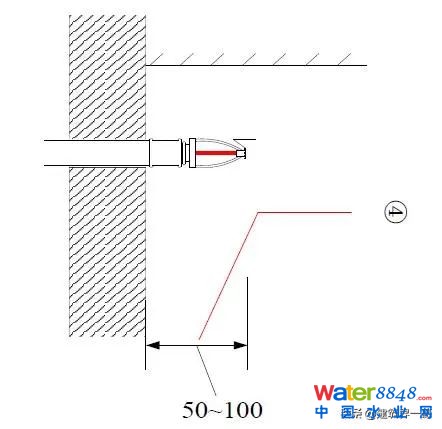 有吊頂的下垂型噴頭安裝噴頭根部應與吊頂平齊,為避免定位不準,可在吊頂龍骨標高確定后再安裝下噴支管;下噴頭與三通之間的短管長度不宜超過150mm。邊墻型噴頭安裝離墻距離為50-100mm。
