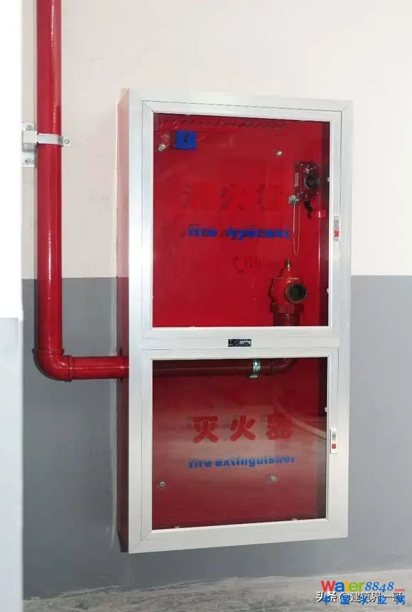 消防立管支架設置標高1.6m。消火栓箱內部支管應設置支架。消火栓不在門軸側,應在開啟側。消火栓口中心離地高度為1.1米。消火栓內部水槍、水帶、報警按鈕、滅火器按設計與圖集要求配置齊全,應根據箱內構造將水龍帶掛放在箱內的掛釘、托盤或支架上,箱體內部清潔干凈。二次裝修后應該重新標示明確,不應被裝修遮蓋。閥門中心距箱側面為 140mm,距離箱后面為100mm