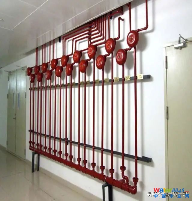 消防延時裝置在拐彎、三通兩端均應設置落地支架。消防延時裝置墻面支架設置與 1.6m 高處。消防管標示大氣美觀,指示明確。閥組排列整齊,儀表閥門標高、朝向一致。
