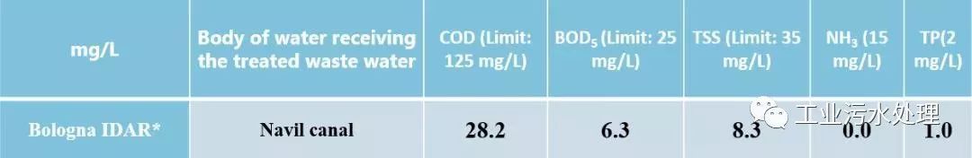 下表顯示了IDAR出水指標(包括COD,BOD5,TSS,NH3),各指標均符合出水標準。