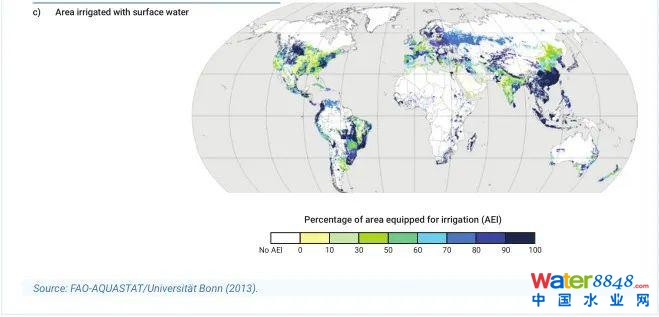 農(nóng)業(yè)節(jié)水措施在一定程度上可以增加水的可利用量,并減少抽水提水所需的能源,進而減少能源生產(chǎn)的耗水量。增加可再生能源在農(nóng)業(yè)中的利用(例如太陽能光伏水泵),為減少溫室氣體排放和支持小規(guī)模農(nóng)業(yè)生產(chǎn)生活創(chuàng)造了機遇。由于農(nóng)業(yè)用水量占全球總用水量的69%,因此減少糧食損失和浪費也能對水和能源需求產(chǎn)生重大影響,進而減少溫室氣體排放。