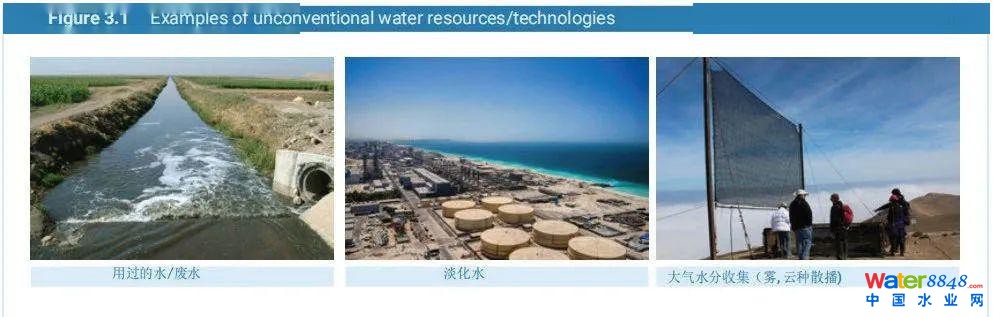在未來規(guī)劃中,越來越需要考慮“非常規(guī)”水資源。在實現(xiàn)安全處理、安全使用的前提下,回用水(或再生水)是常規(guī)水資源許多用途的可靠替代。海水淡化可以增加淡水供應(yīng),但通常能耗較高;如果使用的是不可再生能源,那么海水淡化會帶來溫室氣體排放。對于平流霧資源豐富的地區(qū),人工降雨或霧水收集等大氣水分收集是一種低成本、易維護的方法。