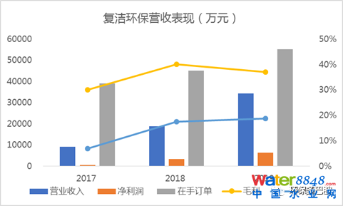 2017-2019年,復(fù)潔主營(yíng)業(yè)務(wù)收入分別為 8,997 萬(wàn)元、18,755 萬(wàn)元及34,228萬(wàn)元,凈利潤(rùn)分別為 629萬(wàn)元、 3,307萬(wàn)元及 6,414 萬(wàn)元。2017-2019年度期末,公司在手訂單總額分別為 39,123 萬(wàn)元、45,027 萬(wàn)元、55,204 萬(wàn)元。