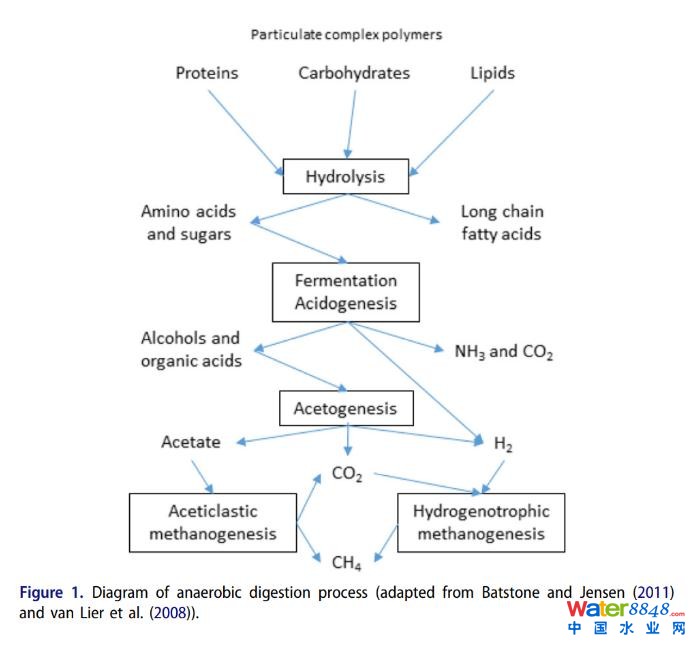 AD是一個(gè)復(fù)雜的微生物系統(tǒng)將有機(jī)化合物在沒有氧氣的情況下轉(zhuǎn)化成沼氣的一種生物轉(zhuǎn)化過程,沼氣主要由甲烷和二氧化碳組成。這個(gè)過程中無機(jī)化合物的轉(zhuǎn)化也可發(fā)生,例如,硫酸鹽可轉(zhuǎn)化為硫。AD的表現(xiàn)取決于復(fù)雜微生物群落的協(xié)調(diào)活動(dòng)。如圖1所示,AD的基質(zhì)轉(zhuǎn)化主要由4個(gè)連續(xù)階段組成: