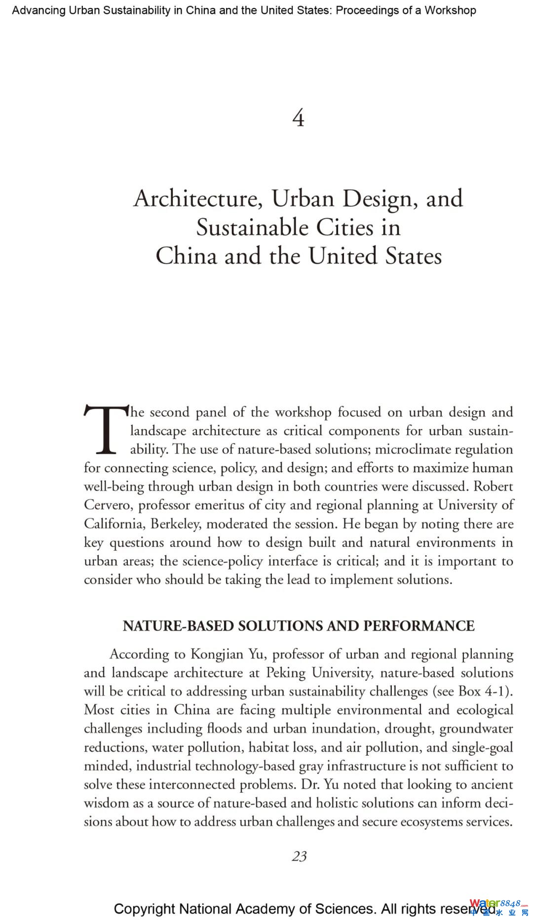 美國科學(xué)院報(bào)告關(guān)注北大科研團(tuán)隊(duì)“基于自然的解決途徑及海綿城市”研究成果 美國科學(xué)院發(fā)布了《中美可持續(xù)城市研究進(jìn)展》報(bào)告,北京大學(xué)建筑與景觀設(shè)計(jì)學(xué)院俞孔堅(jiān)教授團(tuán)隊(duì)基于自然的解決途徑及海綿城市研究成果受到