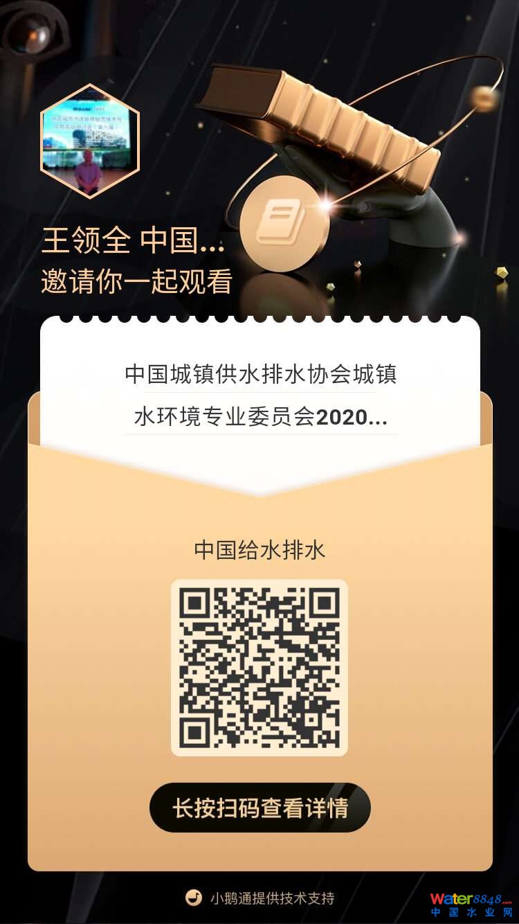 中國水協(xié)團(tuán)體標(biāo)準(zhǔn)《城市供水企業(yè)突發(fā)事件應(yīng)急預(yù)案編制技術(shù)規(guī)程》宣貫會通知 中國城鎮(zhèn)供水排水協(xié)會 直播:中國水協(xié)城鎮(zhèn)供水排水協(xié)會城鎮(zhèn)水環(huán)境專業(yè)委員會2024年年會 直播時(shí)間:2024年11月1日(周五) 08:30—18:00 2024-11-01 08:30:00 開始