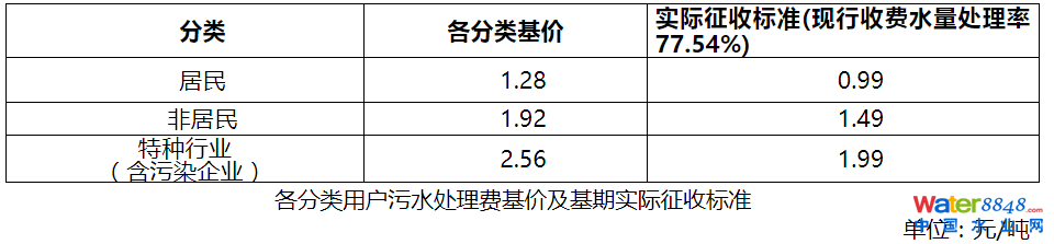 (一)收費標準。各類用戶污水處理費基價及基期實際征收標準調整如下: