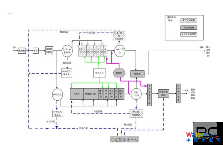 2010年東郊廠開始升級改造工程。改造后東郊污水處理廠升級改造規(guī)模為40萬噸/日其中28萬噸/日采用“多級A/O工藝并輔以化學(xué)除磷”的處理工藝,出水能夠滿足國家現(xiàn)行的《城鎮(zhèn)污水處理廠污染物排放標(biāo)準(zhǔn)》(GB18918-2002)的“一級B”標(biāo)準(zhǔn),12萬噸/日采用“強(qiáng)化生物脫氮工藝并輔以化學(xué)除磷”的處理工藝,出水能夠部分滿足“一級A”標(biāo)準(zhǔn),應(yīng)用于東郊10萬噸/日的再生水廠。