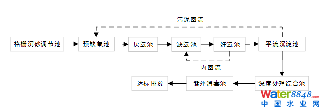 武漢市某鄉(xiāng)鎮(zhèn)污水處理廠占地面積為5333.34m 2(含遠(yuǎn)期預(yù)留地1717.35m 2),服務(wù)人口為10600人,近期設(shè)計(jì)處理規(guī)模為1200m 3/d,出水水質(zhì)執(zhí)行《城鎮(zhèn)污水處理廠污染物排放標(biāo)準(zhǔn)》(GB 18918—2002)一級(jí)A標(biāo)準(zhǔn),其工藝流程如圖1所示。原設(shè)計(jì)方案采用常規(guī)的現(xiàn)澆建造工藝。受軍運(yùn)會(huì)影響,業(yè)主方要求污水處理廠在2019年9月底以前建成通水?紤]到現(xiàn)場(chǎng)的土地征拆和進(jìn)廠路面修整,污水處理廠預(yù)計(jì)的施工工期為3個(gè)月,由于還需分配一部分人員到其他污水處理廠的提標(biāo)改造工程中,造成該項(xiàng)目勞務(wù)人員緊缺、工期壓力大,因此考慮進(jìn)行設(shè)計(jì)方案優(yōu)化。