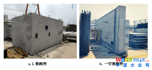 A2/O水池L形構(gòu)件分為兩種規(guī)格:2.6mx2.5mx4.5m、2.6mx2mx4.5m,上下一字形構(gòu)件的高度分別為1.5、3m。