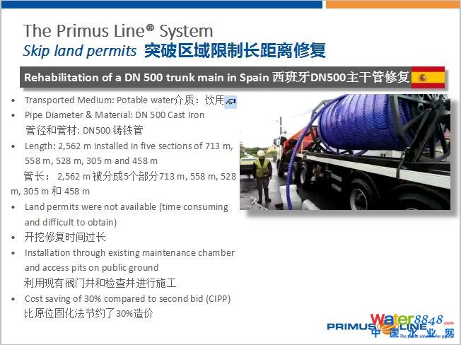 應用普萊姆斯管道系統(tǒng)非開挖修復供水管道