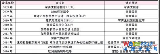 圖為影響歐洲熱泵技術(shù)發(fā)展的法律文件