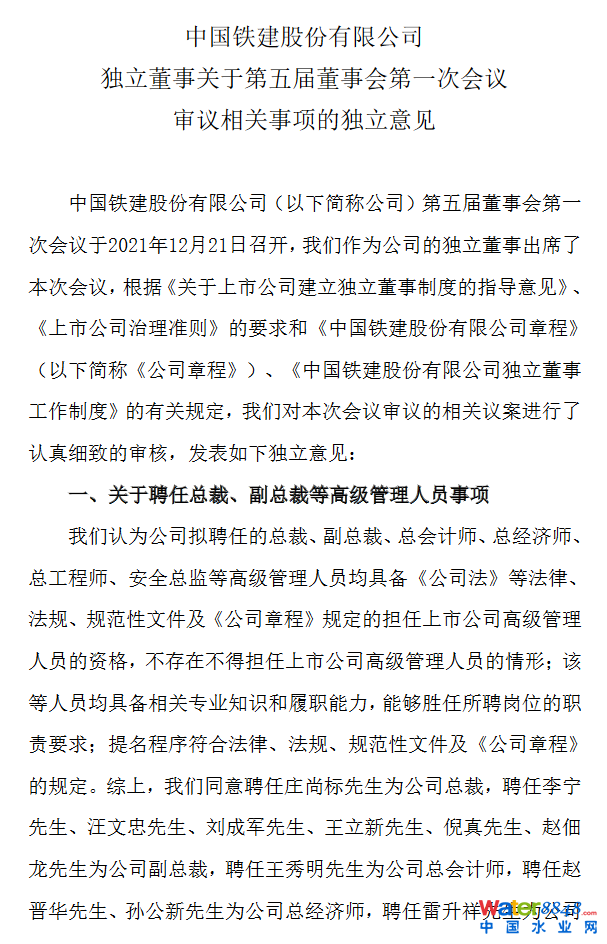 核心提示:中國鐵建:汪建平獲選為公司董事長