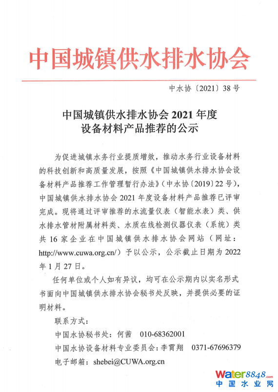 2021年12月29日,由中國城鎮(zhèn)供水排水協(xié)會組織開展的“2021年度設備材料產品推薦企業(yè)名錄”正式發(fā)布,新興鑄管股份有限公司球墨鑄鐵管件產品憑借優(yōu)異的產品質量、良好的品牌影響力和客戶滿意度,作為唯一家球墨鑄鐵管及管件研發(fā)制造商再次入選推薦企業(yè)名錄。