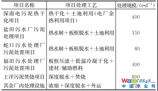 表3 深圳污泥處理處置項(xiàng)目基本情況