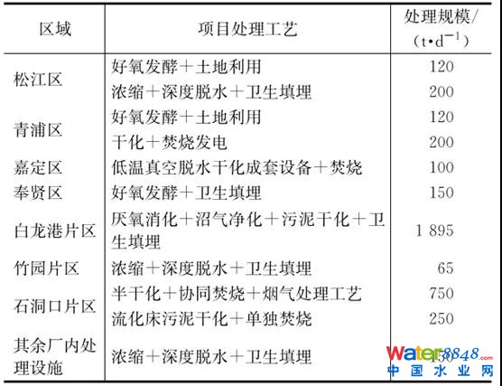 表2 上海污泥處理處置項(xiàng)目基本情況