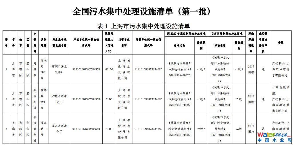 關(guān)于公布《全國污水集中處理設(shè)施清單》(第一批)的公告