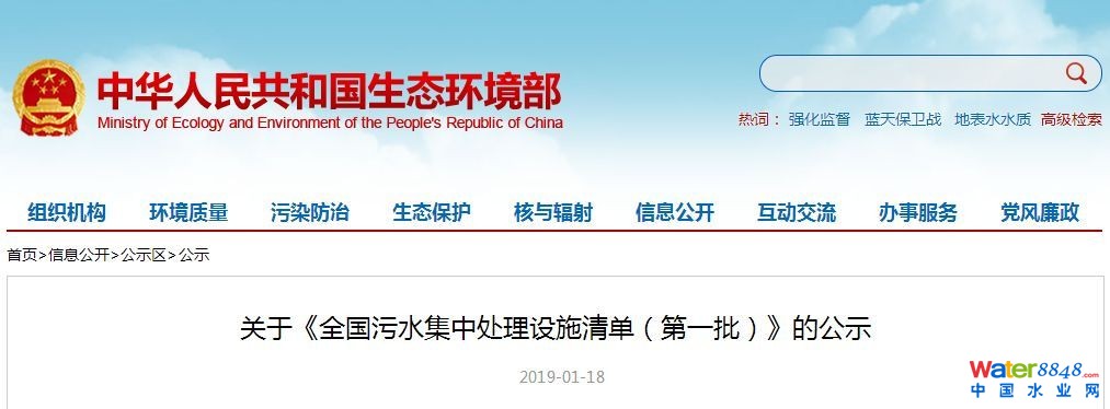 生態(tài)環(huán)境部 關(guān)于公布《全國污水集中處理設(shè)施清單》(第一批)的公告