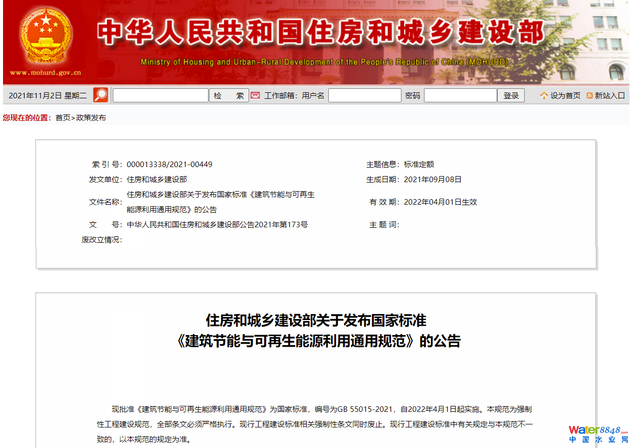 近日,住房和城鄉(xiāng)建設(shè)部發(fā)布國家標(biāo)準(zhǔn)《建筑節(jié)能與可再生能源利用通用規(guī)范》的公告。