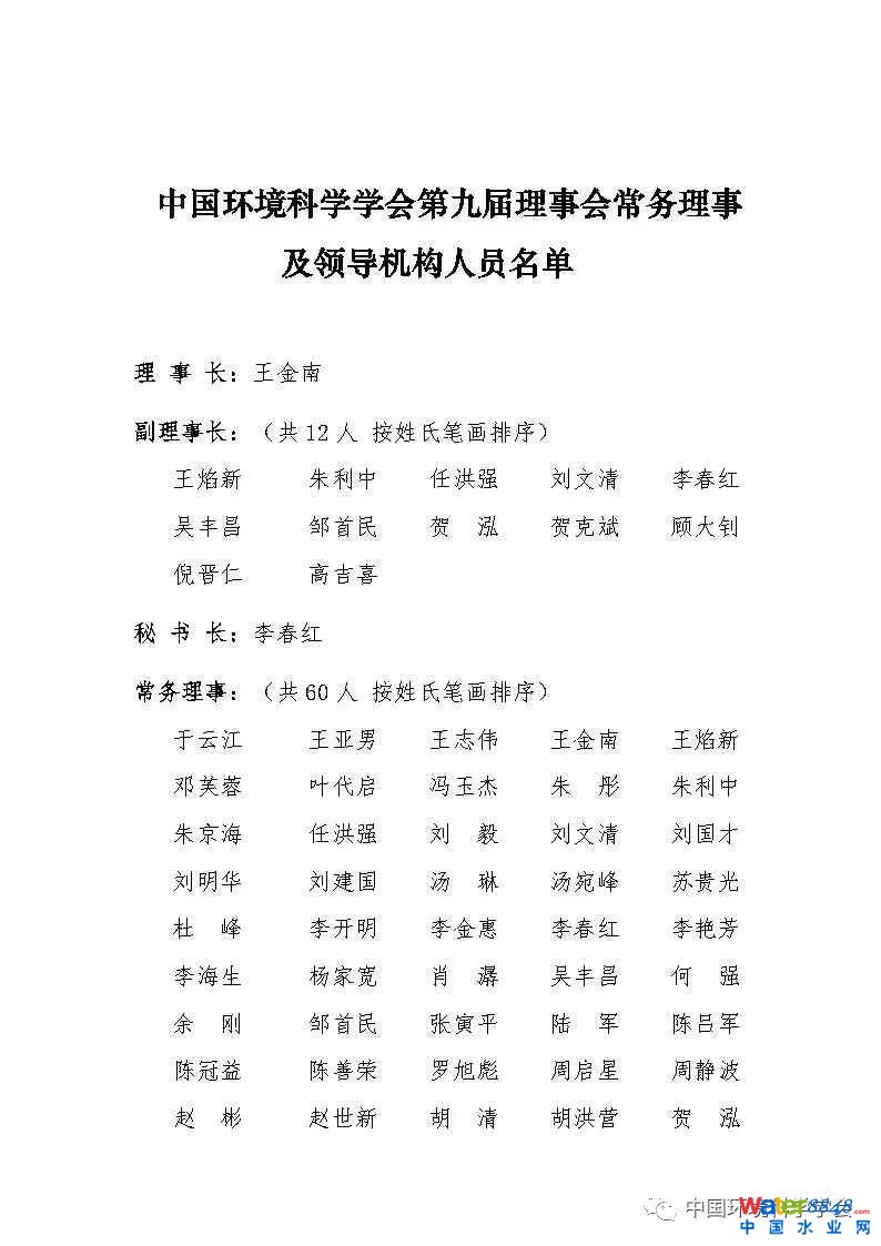 附中國(guó)環(huán)境科學(xué)學(xué)會(huì)第九屆理事會(huì)和第二屆監(jiān)事會(huì)名單: