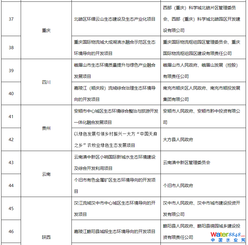 以下為第二批生態(tài)環(huán)境導(dǎo)向的開發(fā)(EOD)模式試點(diǎn)項(xiàng)目名單表: