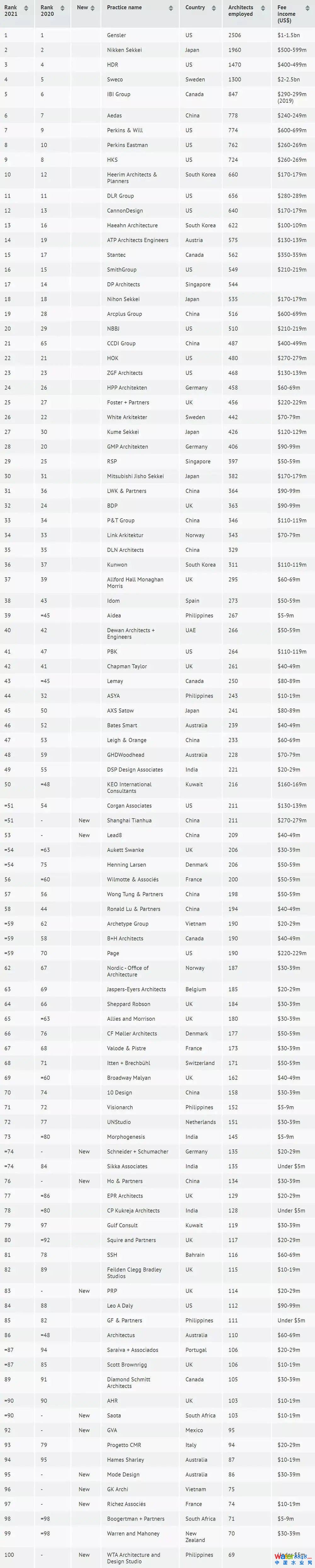 2021全球100強(qiáng)建筑設(shè)計(jì)公司名單公布,中國(guó)上榜13家