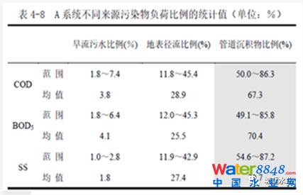 4. 雨天溢流污染太嚴(yán)重。排水管道養(yǎng)護(hù)管理工作最最重要的兩個(gè)字是“清、通”。雨水管是“清”,“清”就是把雨水管道中的積泥“清”出來,讓雨水管做到旱天無積泥、少積泥!污水管是“通”,把積泥“通”到下游去,進(jìn)到污水處理廠,讓污水管無淤積、無堵塞、水暢流!合流管既要“清”、也要“通”,旱天多多“通”,保證低水位時(shí),像污水管一樣,無淤積、無堵塞、水暢流;降雨前還應(yīng)該好好再進(jìn)行“清”。雨水管和合流管都有排河道水體的口門,“清”的目的就是雨天少點(diǎn)污染物入河。只有最大限度地減少管道中的積泥,才能夠減少雨天溢流污染?墒俏鬯、合流管和雨水管往往一年四季都是高水位,甚至是滿管流,這就讓“清、通”養(yǎng)護(hù)變得十分困難,就不可能做到有效地將雨水、合流管中的積泥“清出來”!好比煮了一鍋稀飯,想把米粒都撈干凈,是件很難的事道理是一樣的。圖6是奧地利排水管道中的積泥情況,其大部分管道積泥不超過管徑的1/40。這比我們養(yǎng)護(hù)后要求積泥厚度不大于1/8可好得多!管道積泥少了,合流管、雨水管雨天排水口溢流和出流的污染物就少了。圖7是某平原河網(wǎng)地區(qū)城市雨天排水口出流污染的構(gòu)成,在總污染負(fù)荷中,管道積泥的污染負(fù)荷要占到60%以上,可見合流管道、雨水管道清淤工作的重要性之高。圖8是某山地城市雨天合流制排水口污染物變化情況,COD最高可以高達(dá)2000mg/L之巨。
