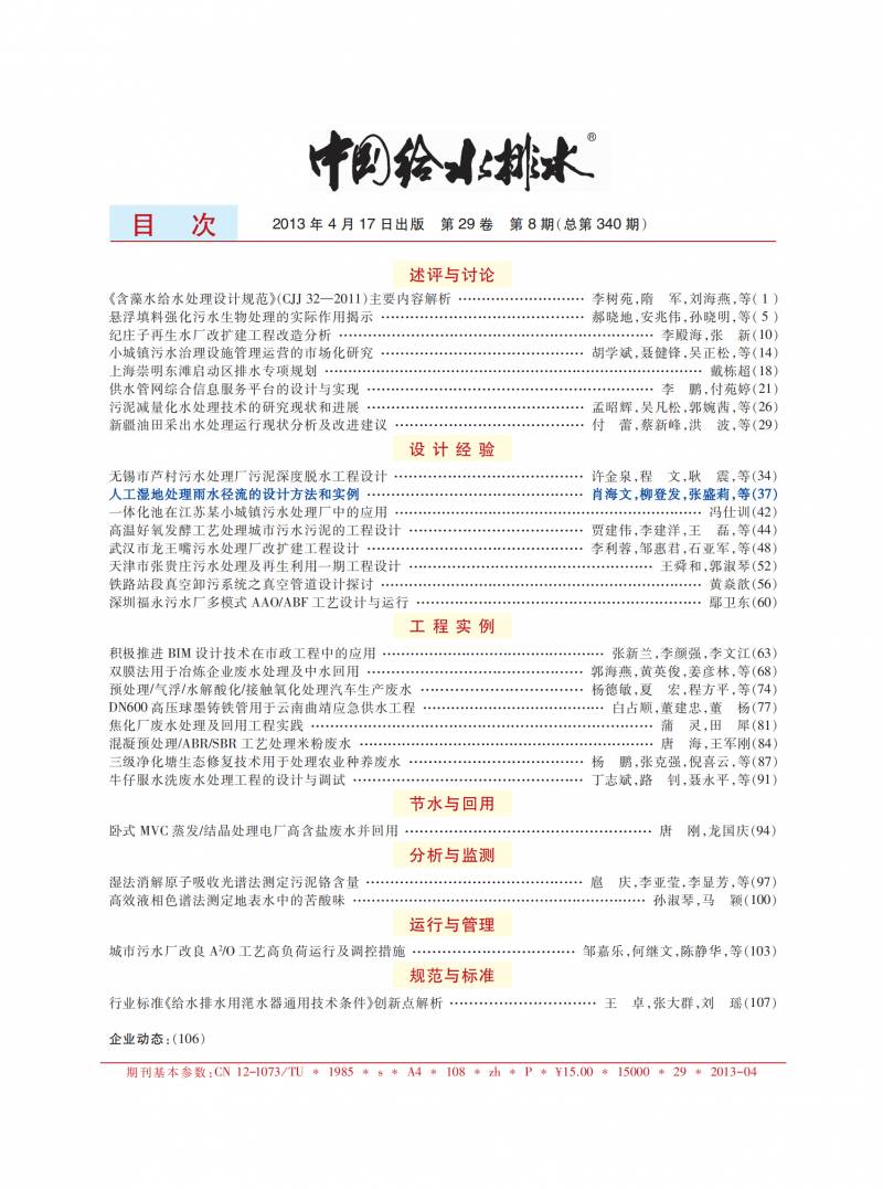 中國(guó)給水排水雜志2013年第八期雜志封面和目錄頁(yè)掃描