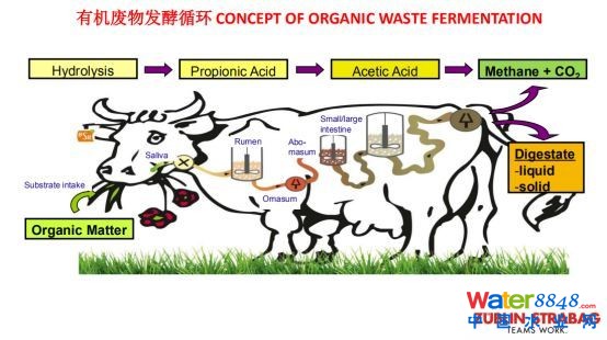 “有機(jī)廢物發(fā)酵循環(huán)就像牛的消化循環(huán),把草吃進(jìn)去水解,通過牛的幾個(gè)胃和大小腸來消化處理,相當(dāng)于生物的幾級(jí)處理器,最后出來就是沼氣和二氧化碳,以及液態(tài)和固體的沼渣沼液。整個(gè)過程是仿生牛在生態(tài)鏈起的作用。”彭濤介紹道。