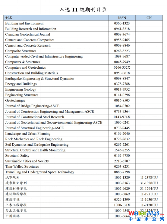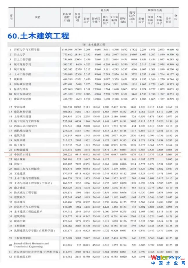 土木建筑工程領(lǐng)域 Q1 區(qū)共 42 種期刊,《中國給水排水》位列第 22 名 。該領(lǐng)域 Q1 區(qū)期刊名錄如下: