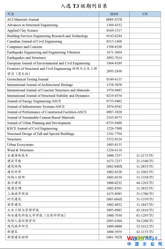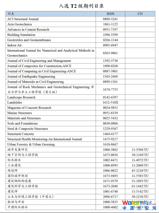 2020年,由中國建筑學(xué)會(huì)作為牽頭單位完成了建筑科學(xué)領(lǐng)域高質(zhì)量科技期刊分級(jí)目錄期刊的遴選工作。 由中國市政工程華北設(shè)計(jì)研究總院有限公司、國家城市給水排水工程技術(shù)研究中心主辦的《中國給水排水》雜志入選T2級(jí)期刊目錄 。
