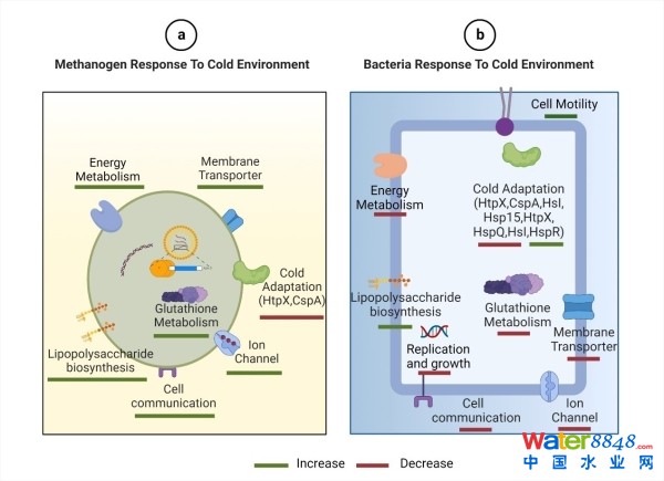 1.低溫對(duì)厭氧消化微生物代謝的影響。a、產(chǎn)甲烷菌;b、細(xì)菌!