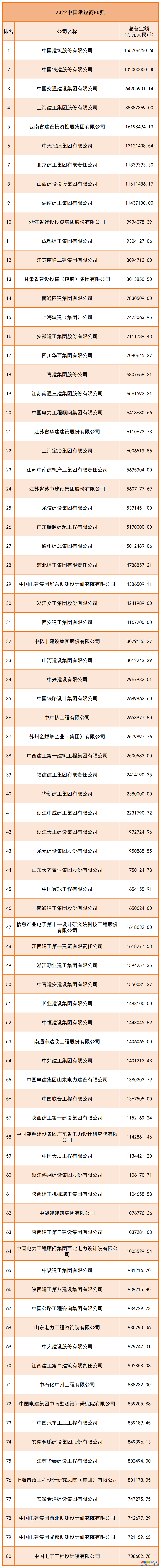 2022年中國承包商80強和工程設(shè)計企業(yè)60強出爐!